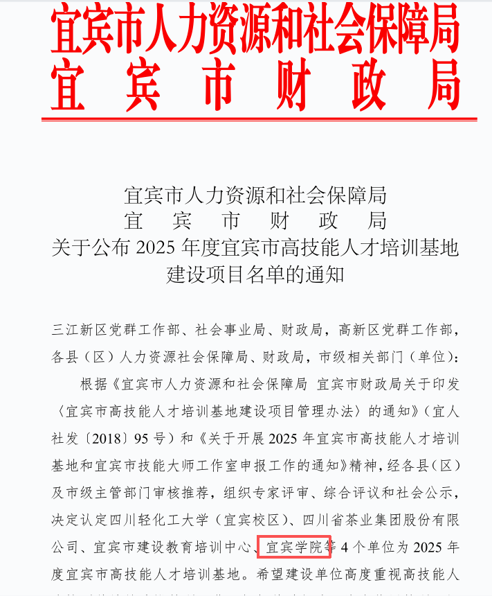 近日,宜宾市人力资源和社会保障局联合市财政局正式发布公告,我校凭借在食品发酵领域的深厚积淀与办学实力,成功入选2025年度宜宾市高技能人才培训基地。1月19日,宜宾市人民政府副市长刘勇为基地授牌。这是我校深化校地合作、产教融合、服务地方经济的重要成果,是在高技能人才培育领域的突破,标志着必赢棋盘app下载在应用型转型办学方面迈出新的一步,为地方高技能人才培养注入动能。
